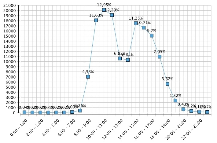 Le graphique ci-dessous vous permet de prendre connaissance de nos pics d’appels pour vous permettre d’appeler en dehors de ceux-ci.